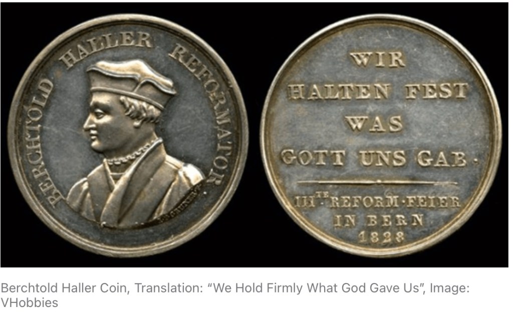 The Theses of Berne were born in the Swiss-German area in Europe in a town where Catholic and Protestant ideas were in tension. In 1523, the Roman Catholic factions of Berne forbade the preaching of Protestantism. From what I can tell, the Reformers went around the restrictions by basing all of their teachings on the Bible (shouldn’t everyone do that?) in order to sidestep the political-religious restrictions.